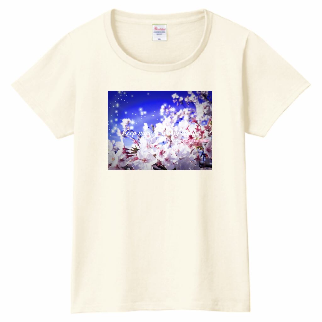 [Dark]♠キラキラBeautiful Cherry blossom✵੯•`໒♥ヘビーウェイトTシャツ☁Ladies〔Printstar✵੯•`໒♥Ivory