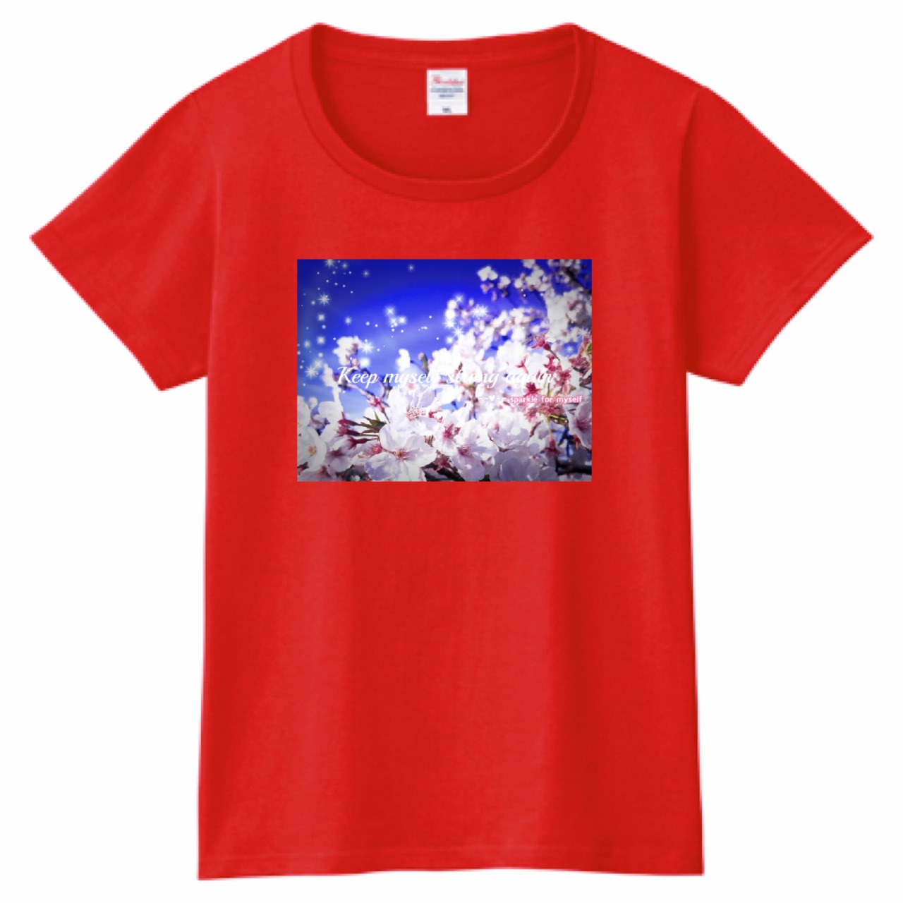 [Dark]♠キラキラBeautiful Cherry blossom✵੯•`໒♥ヘビーウェイトTシャツ☁Ladies〔Printstar✵੯•`໒♥Red