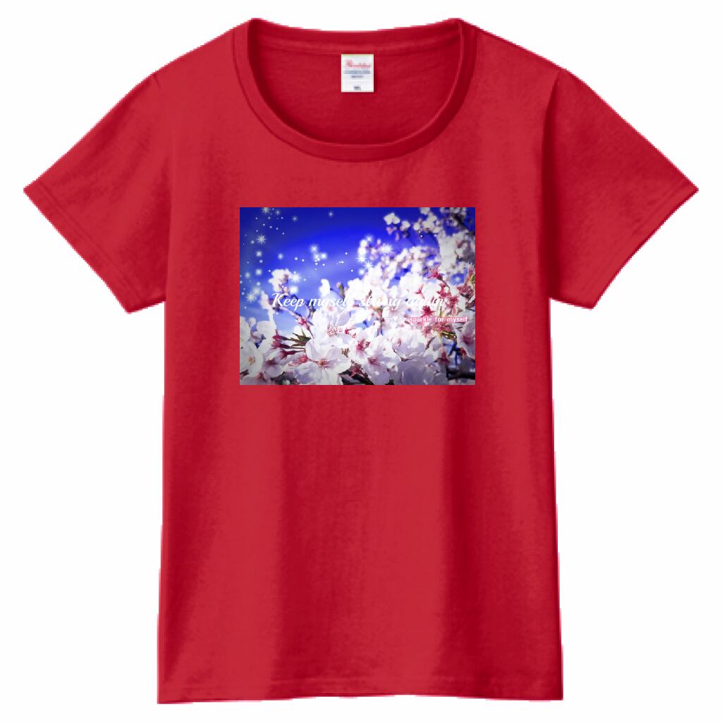 [Dark]♠キラキラBeautiful Cherry blossom✵੯•`໒♥ヘビーウェイトTシャツ☁Ladies〔Printstar✵੯•`໒♥Garnet red