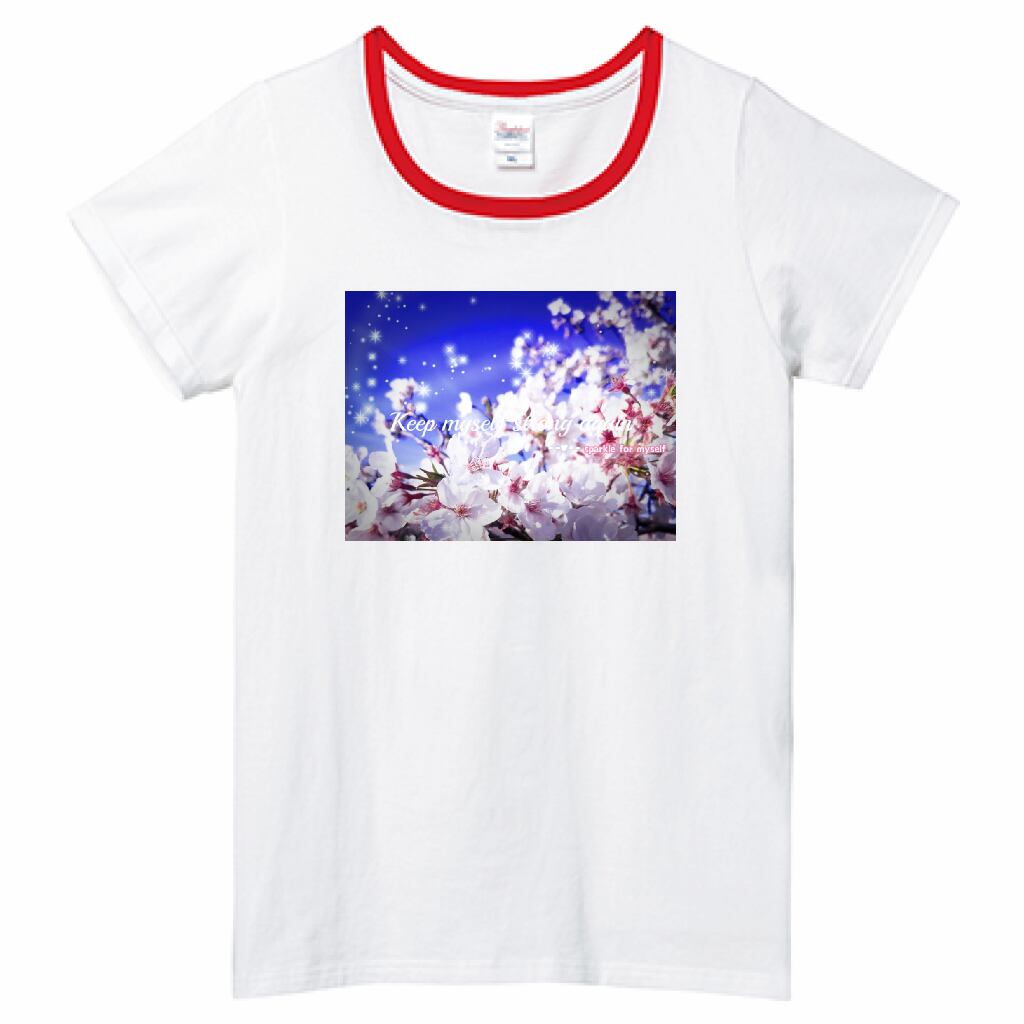 [Dark]♠キラキラBeautiful Cherry blossom✵੯•`໒♥ヘビーウェイトTシャツ☁Ladies〔Printstar✵੯•`໒♥White × Red