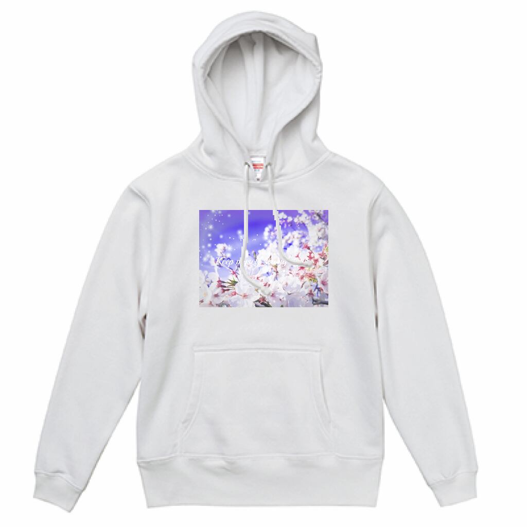 キラキラBeautiful Cherry blossom♥スウェットプルオーバーパーカー☁裏起毛✵੯•`໒♥White