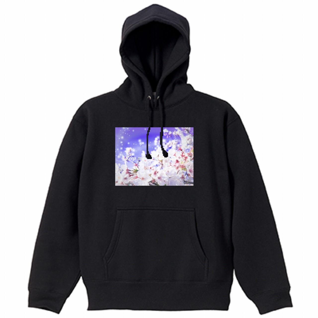 キラキラBeautiful Cherry blossom♥スウェットプルオーバーパーカー☁裏起毛✵੯•`໒♥Black
