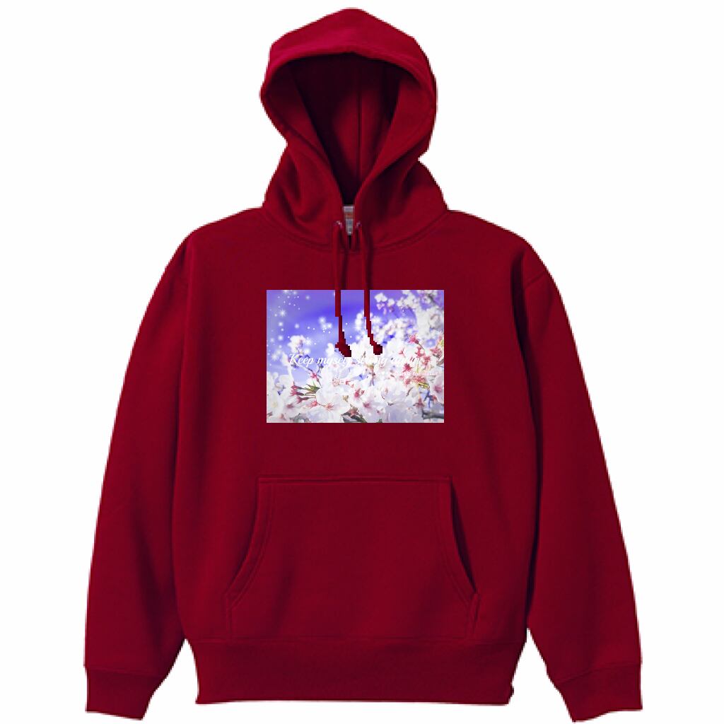 キラキラBeautiful Cherry blossom♥スウェットプルオーバーパーカー☁裏起毛✵੯•`໒♥Burgundy