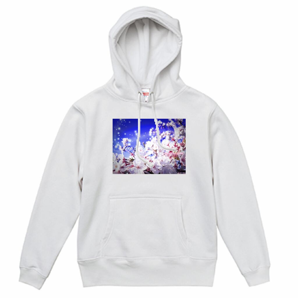 [Dark]♠キラキラBeautiful Cherry blossom♥スウェットプルオーバーパーカー☁裏起毛✵੯•`໒♥White