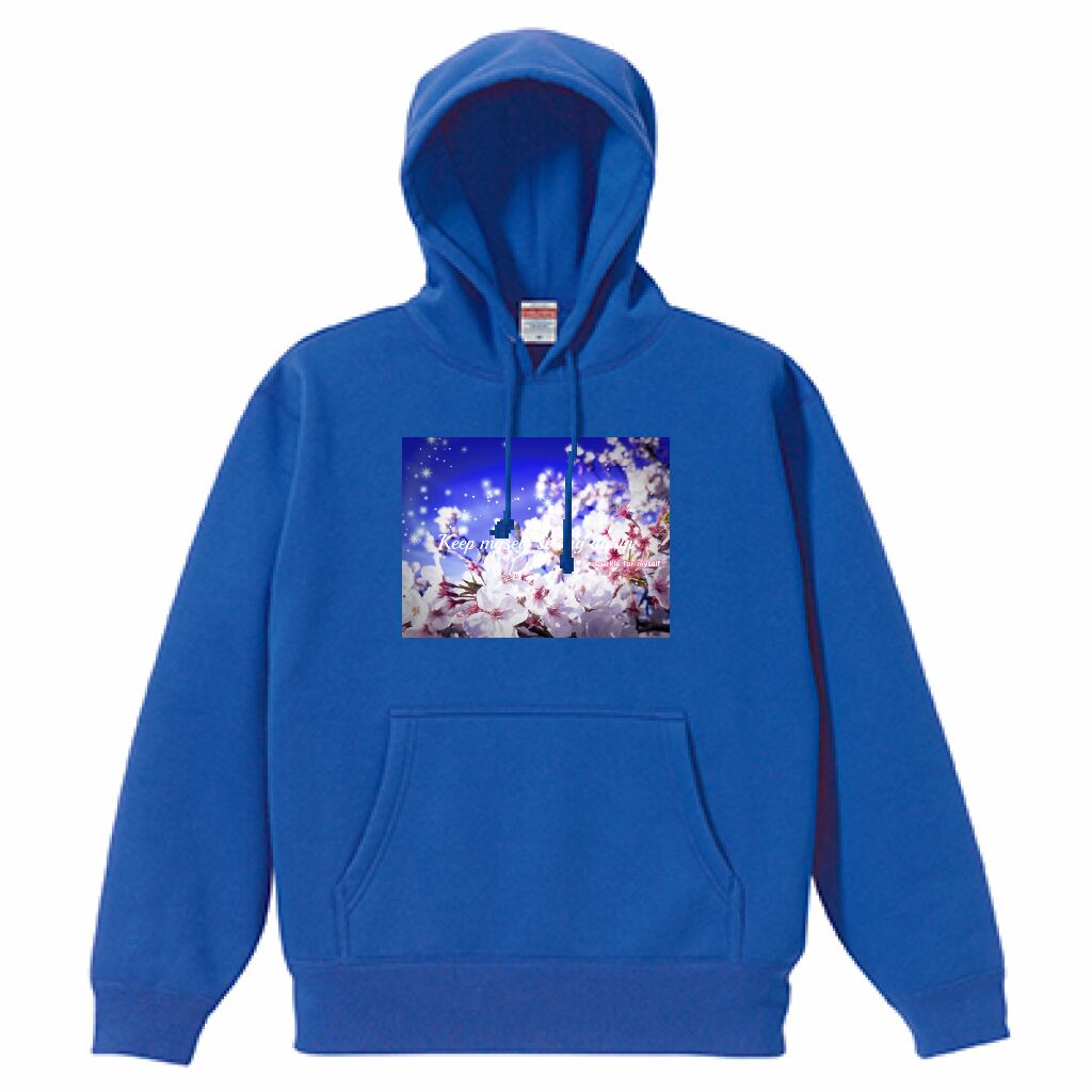 [Dark]♠キラキラBeautiful Cherry blossom♥スウェットプルオーバーパーカー☁裏起毛✵੯•`໒♥Royal blue