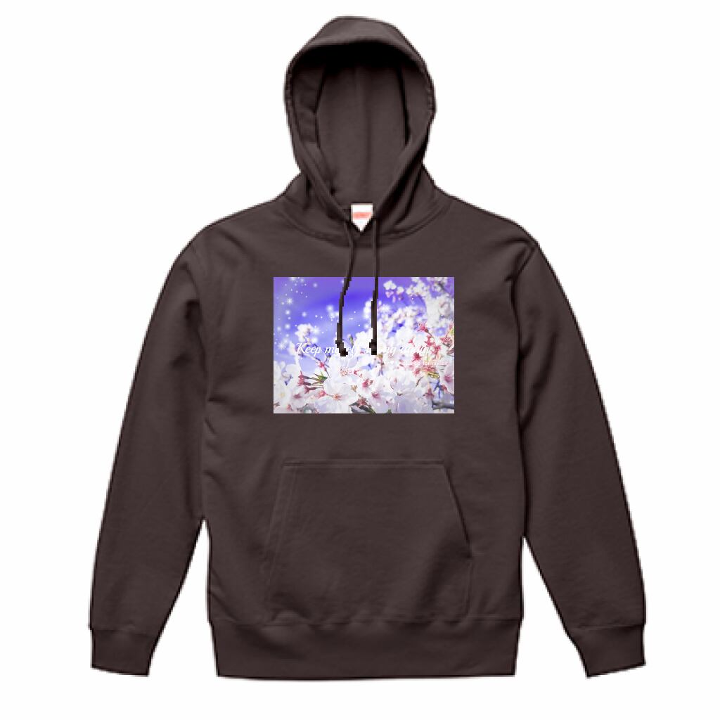 [薄手]スウェットプルオーバーパーカー☁キラキラCherry blossom✵੯•`໒♥Charcoal