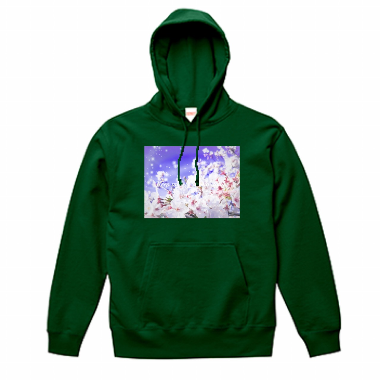 [薄手]スウェットプルオーバーパーカー☁キラキラCherry blossom✵੯•`໒♥Ivy green