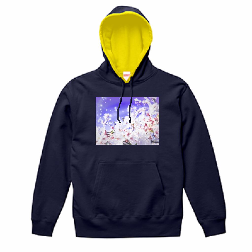 [薄手]スウェットプルオーバーパーカー☁キラキラCherry blossom✵੯•`໒♥Navy × Blazing yellow