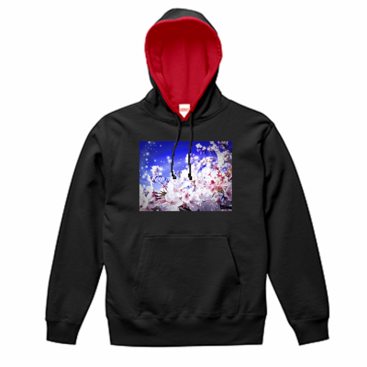 [薄手]スウェットプルオーバーパーカー☁[Dark]♠キラキラBeautiful Cherry blossom✵੯•`໒♥Black × Red