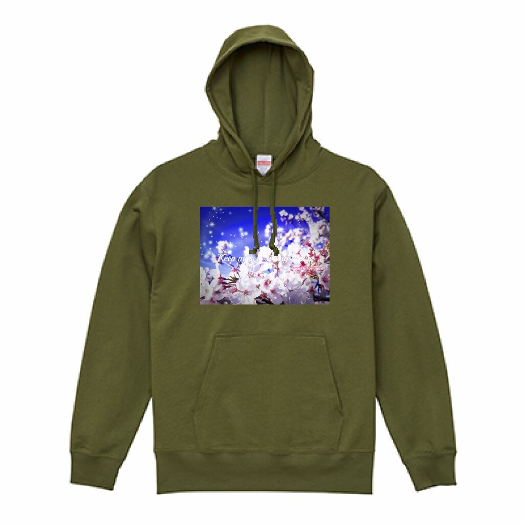 [薄手]スウェットプルオーバーパーカー☁[Dark]♠キラキラBeautiful Cherry blossom✵੯•`໒♥Light olive