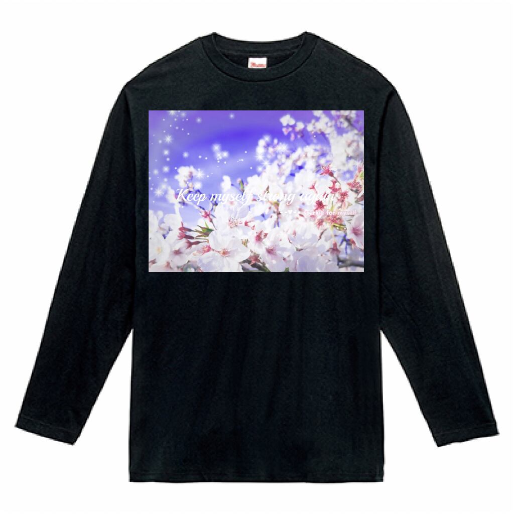 キラキラBeautiful Cherry blossom♥ヘビーウェイト長袖Tシャツ✵੯•`໒♥Black