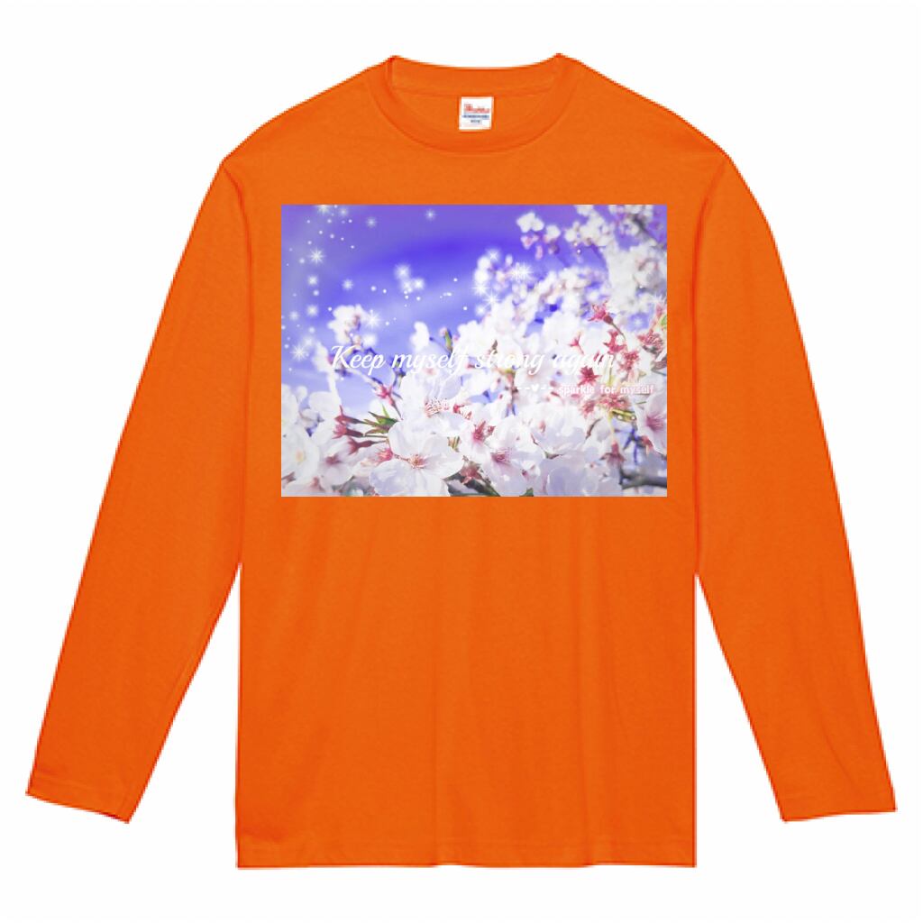 キラキラBeautiful Cherry blossom♥ヘビーウェイト長袖Tシャツ✵੯•`໒♥Orange