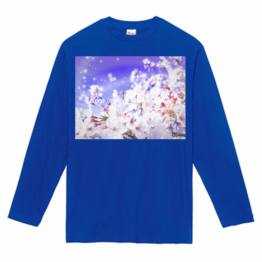 キラキラBeautiful Cherry blossom♥ヘビーウェイト長袖Tシャツ✵੯•`໒♥Royal blue