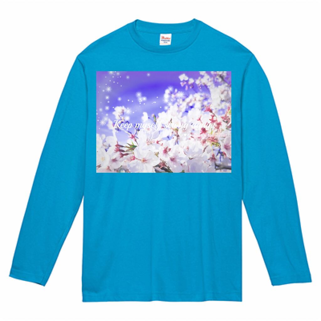 キラキラBeautiful Cherry blossom♥ヘビーウェイト長袖Tシャツ✵੯•`໒♥Turquoise
