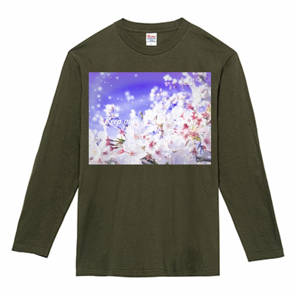 キラキラBeautiful Cherry blossom♥ヘビーウェイト長袖Tシャツ✵੯•`໒♥Army green