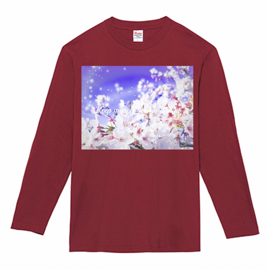 キラキラBeautiful Cherry blossom♥ヘビーウェイト長袖Tシャツ✵੯•`໒♥Burgundy