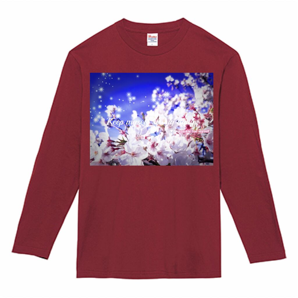 [Dark]♠キラキラBeautiful Cherry blossom♥ヘビーウェイト長袖Tシャツ✵੯•`໒♥Burgundy