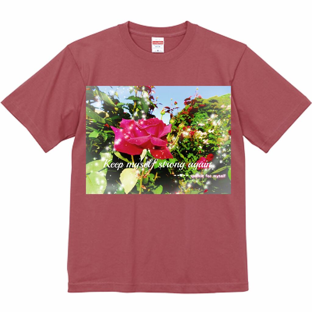 キラキラRoseTシャツ☁生地厚✵੯•`໒♥Smokey red