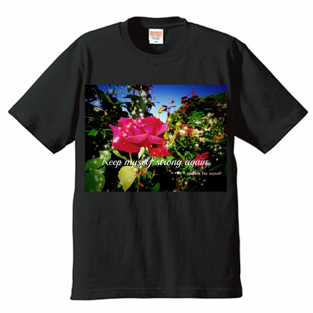 [Dark]♠キラキラRoseTシャツ☁生地厚✵੯•`໒♥Black