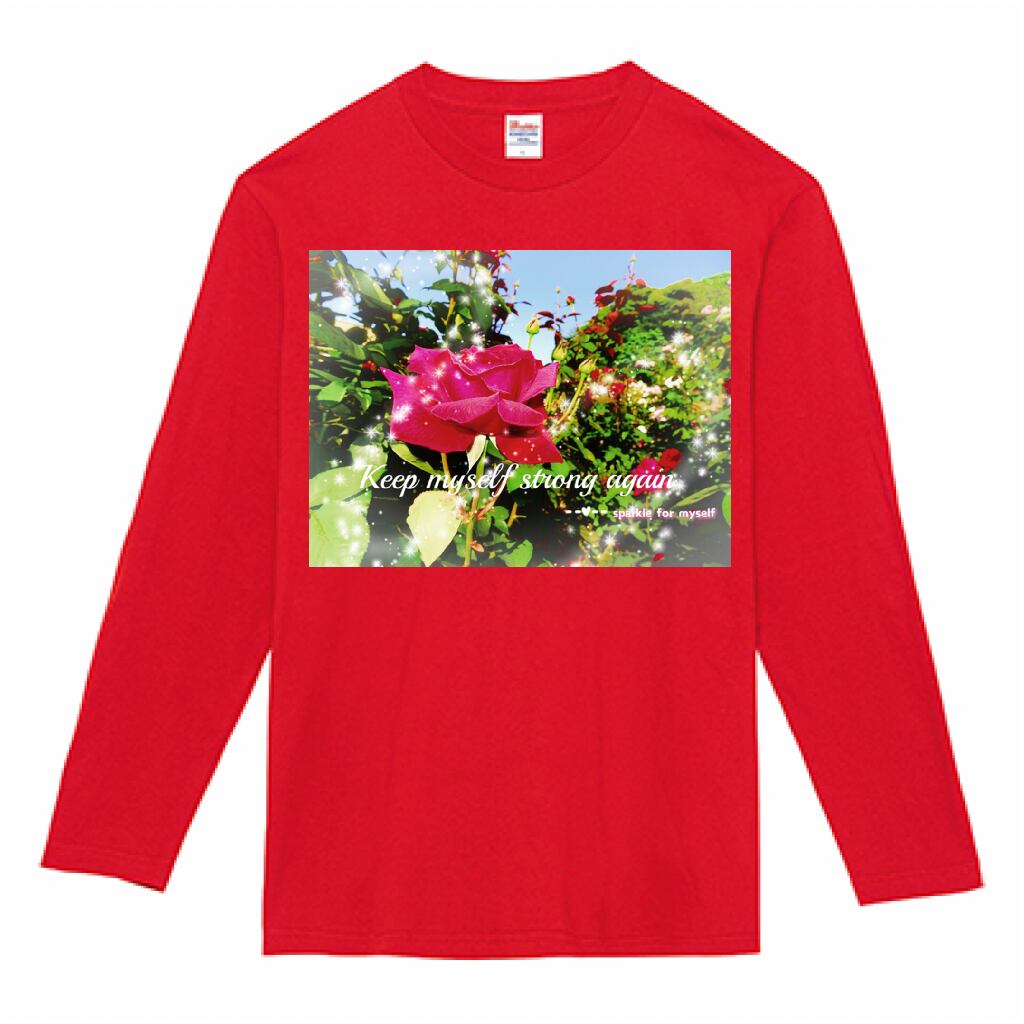キラキラRose♥ヘビーウェイト長袖Tシャツ✵੯•`໒♥Red