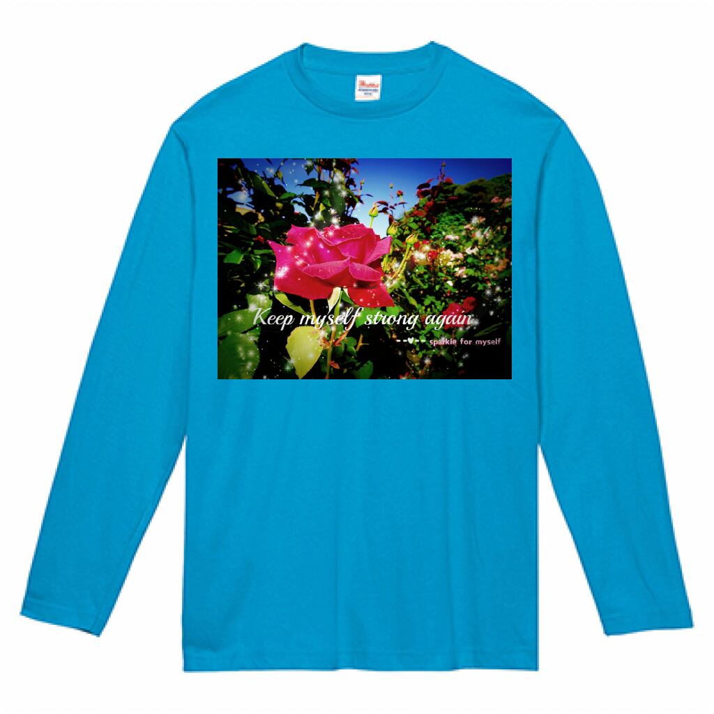 [Dark]♠キラキラRose♥ヘビーウェイト長袖Tシャツ✵੯•`໒♥Turquoise