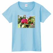 キラキラRoseTシャツ☁Ladies〔Printstar✵੯•`໒♥Light blue