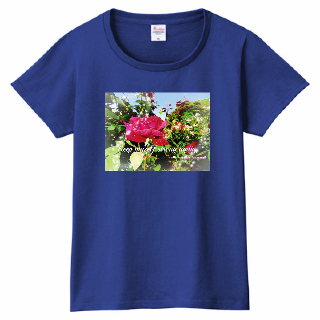 キラキラRoseTシャツ☁Ladies〔Printstar✵੯•`໒♥Japan blue