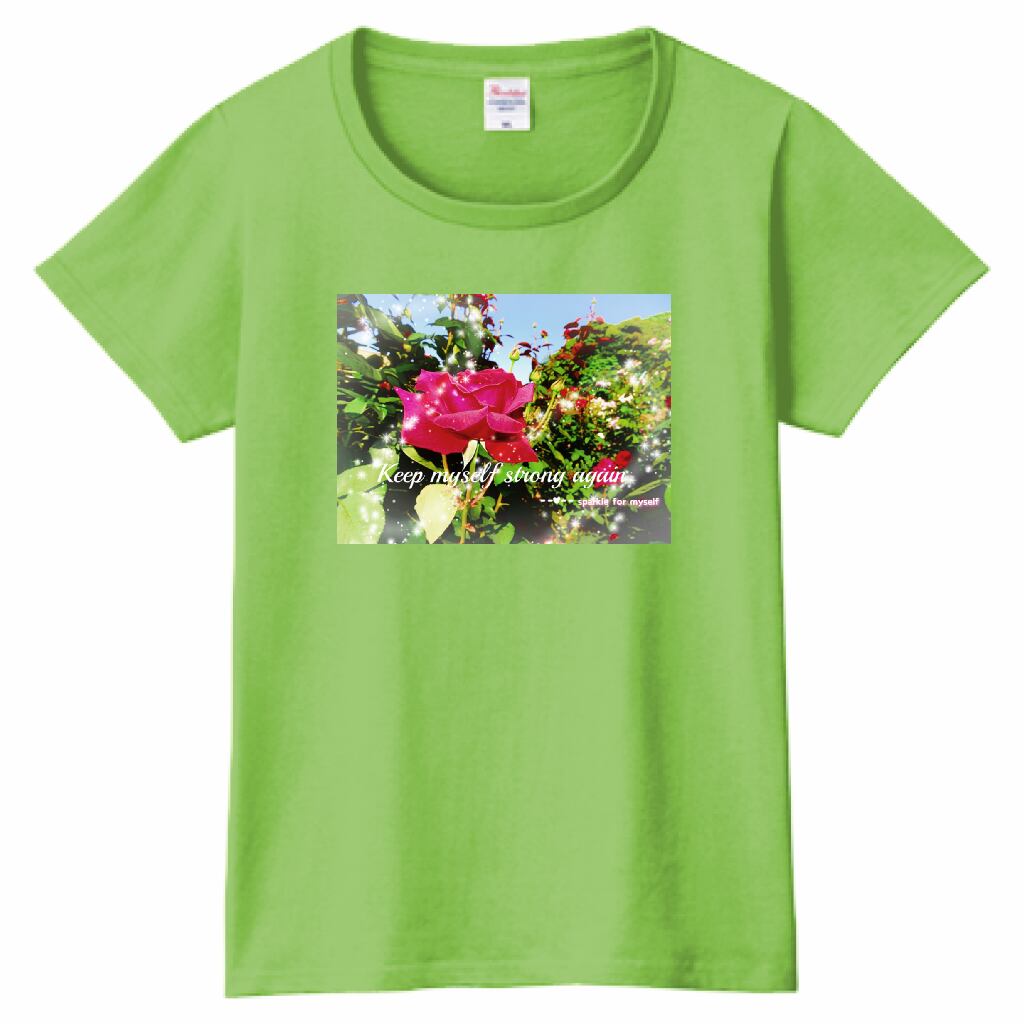 キラキラRoseTシャツ☁Ladies[Printstar]✵੯•`໒♥Lime