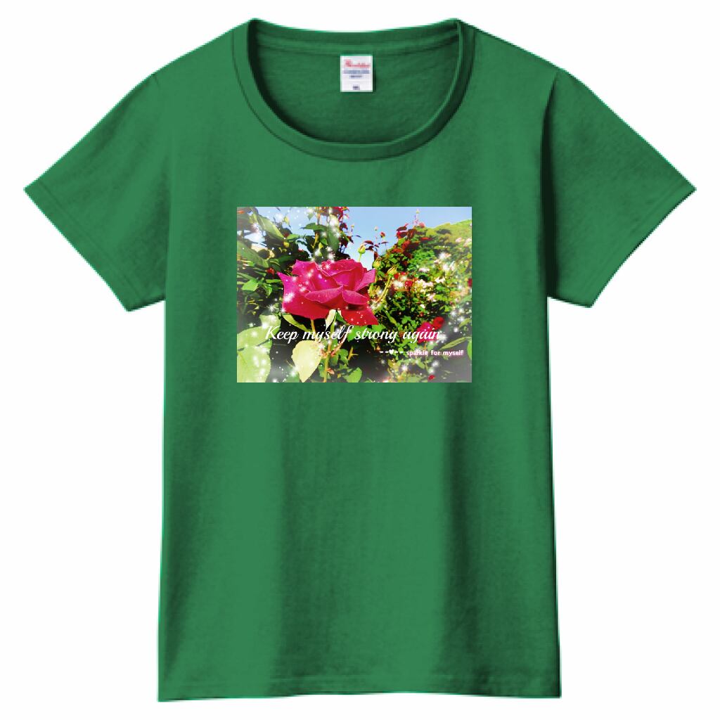 キラキラRoseTシャツ☁Ladies[Printstar]✵੯•`໒♥Green